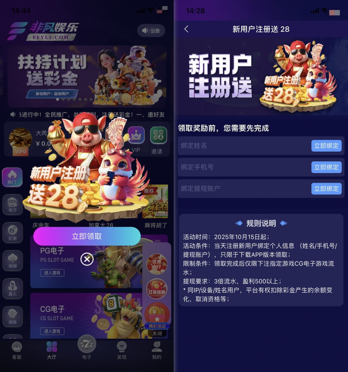 注册送绑定信息送28元/首存100元可以参加100+100 再额外找我拿88扶持