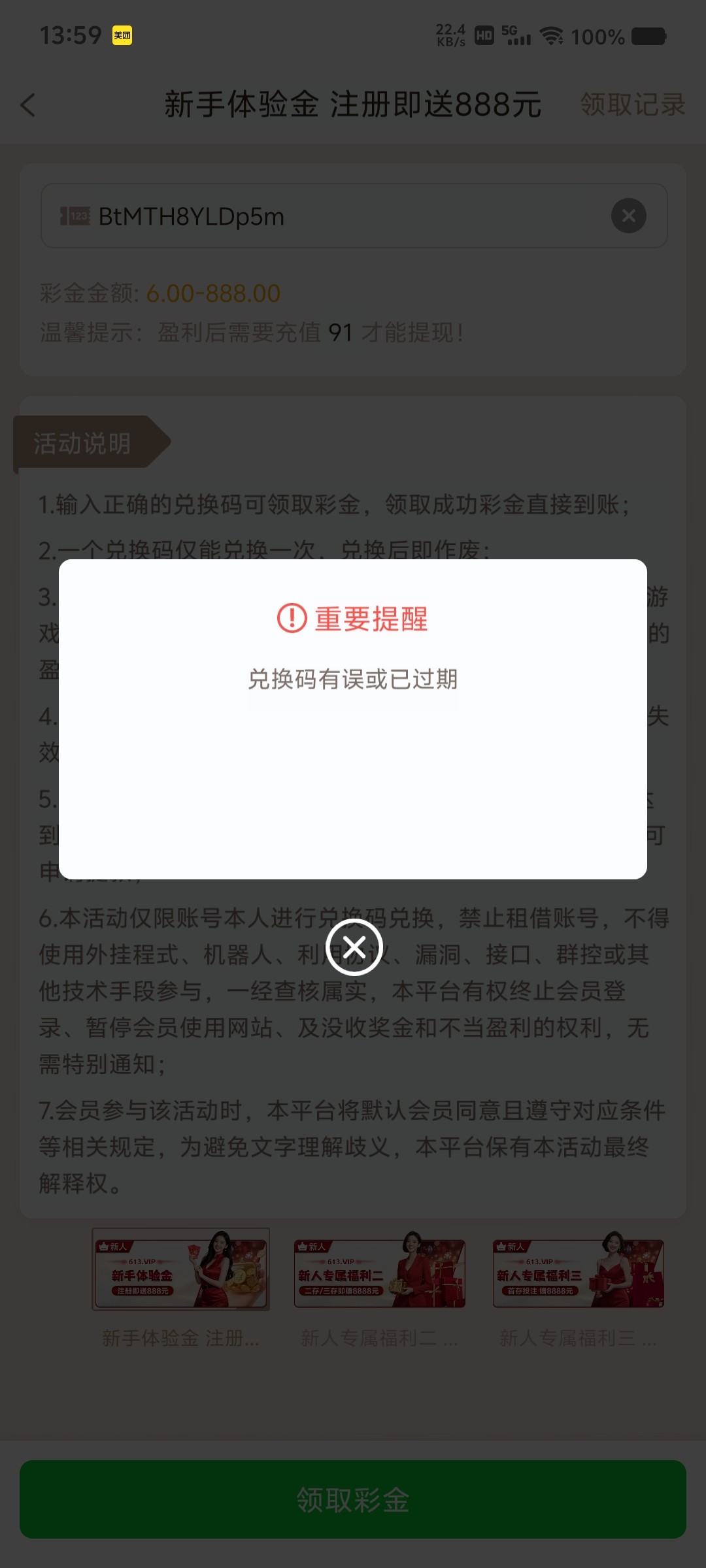 兑换码有误或已过期