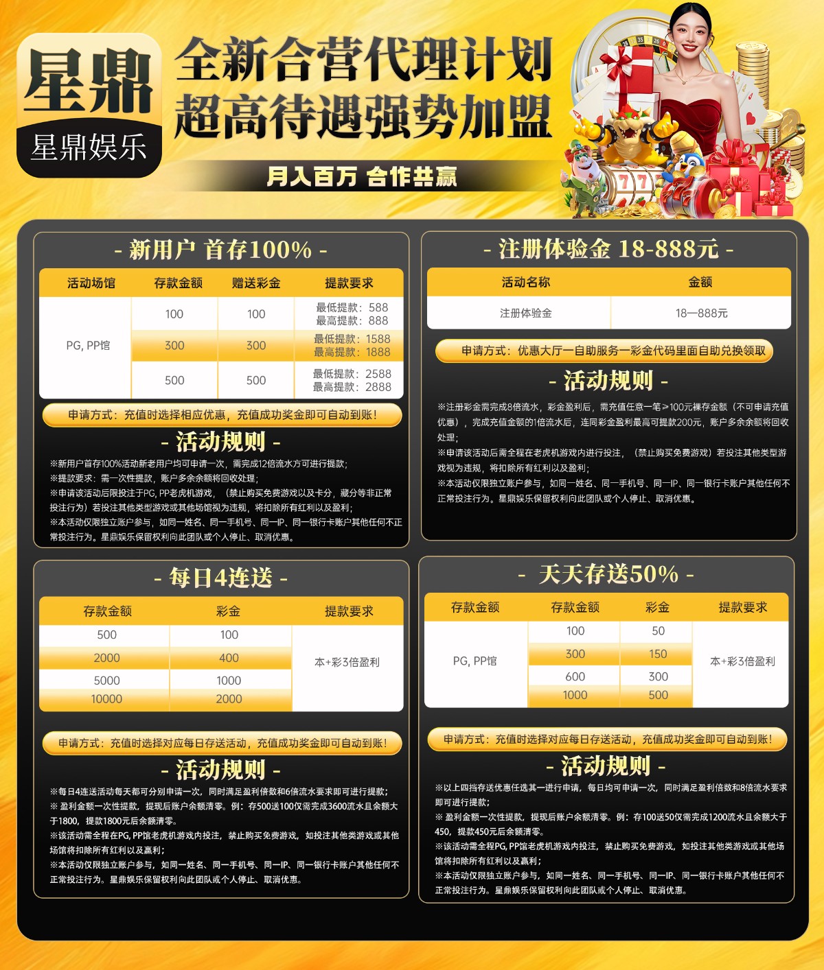 首存:100+100,300+300,500+500 规则自己看。