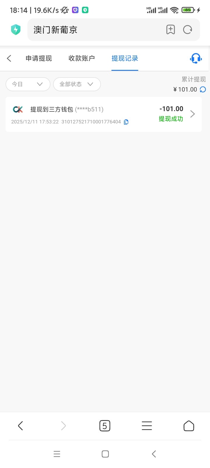 我也提了100半个小时了 还没到账