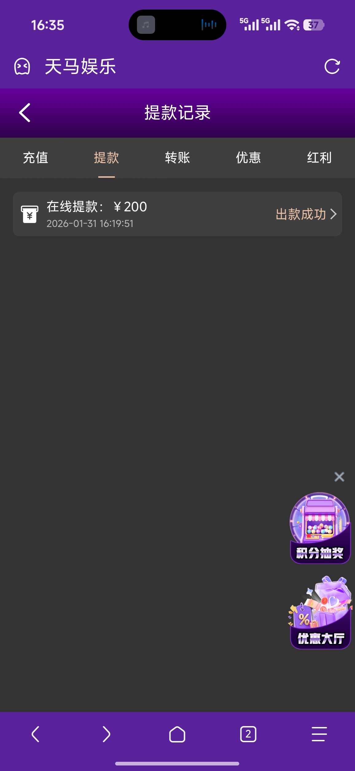 代码自助38元,8水,完成要求需要存款100(不可参与其他优惠),最多提款200元,具体规则自己看图。不喜欢可以不要。【代码可以先兑换,左上角点击彩金商场自助兑换】